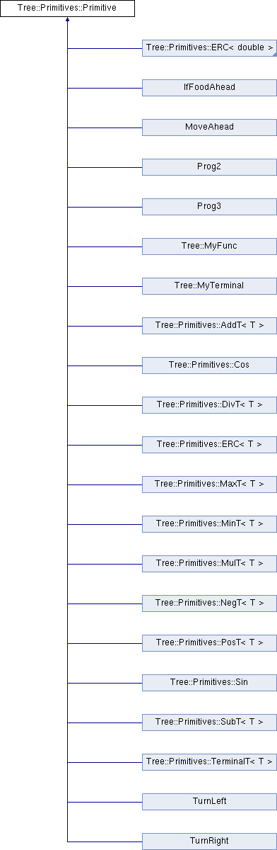 Implemented in Tree::MyTerminal, Tree::MyFunc, Tree::Primitives::AddT< T >, Tree::Primitives::Cos, Tree::Primitives::DivT< T >, Tree::Primitives::MaxT< T >, Tree::Primitives::MinT< T >, Tree::Primitives::MulT< T >, Tree::Primitives::NegT< T >, Tree::Primitives::PosT< T >, Tree::Primitives::Sin, Tree::Primitives::SubT< T >, Tree::Primitives::TerminalT< T >, Tree::Primitives::ERC< T >, IfFoodAhead, MoveAhead, Prog2, Prog3, TurnLeft, TurnRight, and Tree::Primitives::ERC< double >.